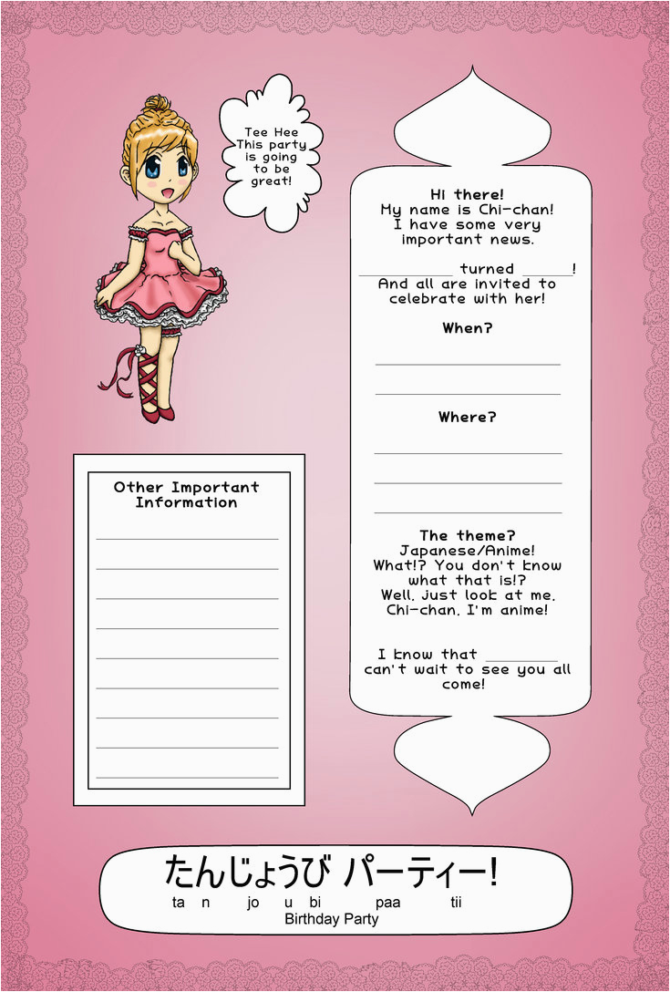 Anime Birthday Invitations Japanese Anime Birthday Invitation Pink by Miracarpathia and all other pictures, designs or photos on our website are copyright of their respective owners. we get our pictures from another websites, search engines and other sources to use as an inspiration for you. please contact us if you think we are infringing copyright of your pictures using contact page. we will be very happy to help you.