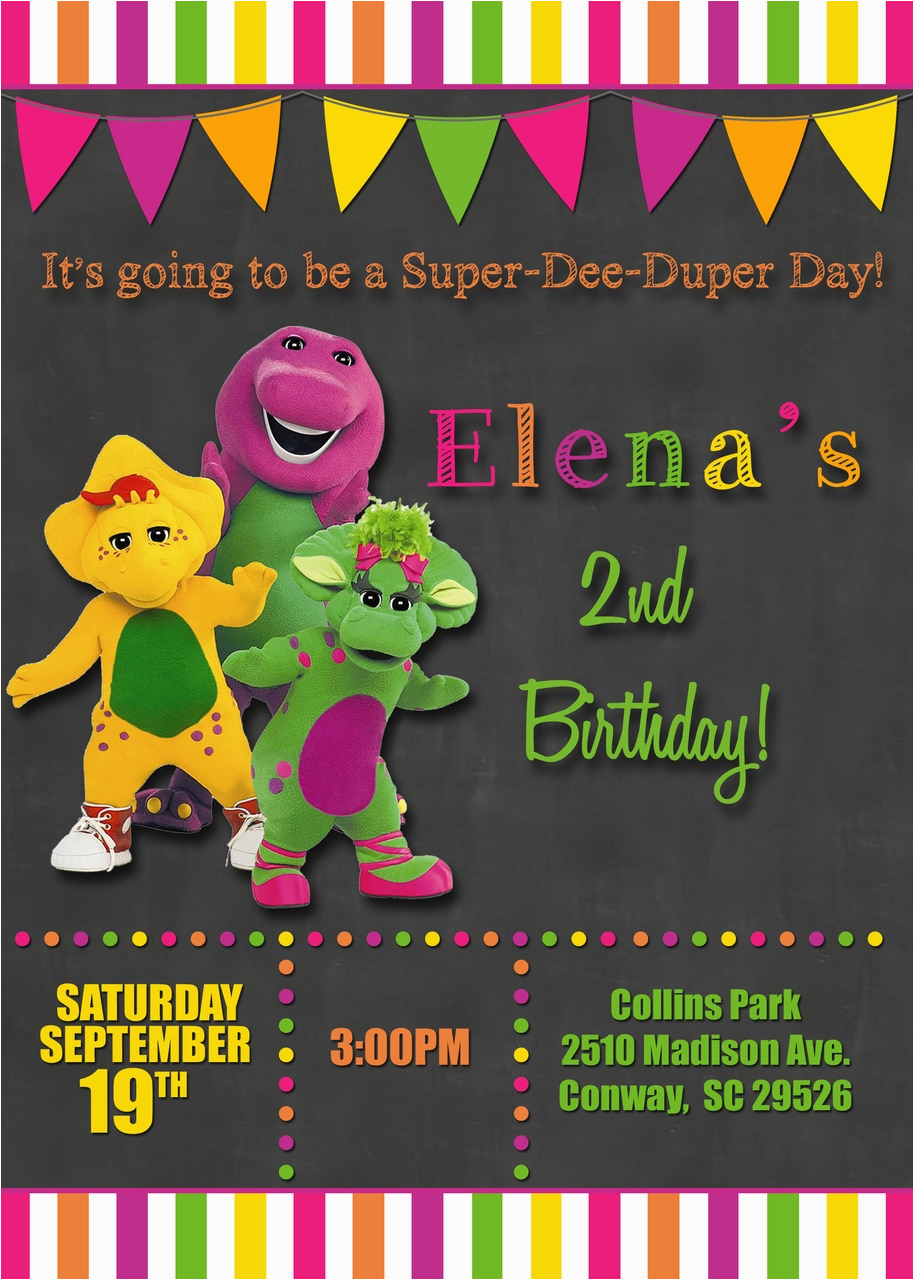 Barney Personalized Birthday Invitations Chalkboard Barney Birthday Party Invitations and all other pictures, designs or photos on our website are copyright of their respective owners. we get our pictures from another websites, search engines and other sources to use as an inspiration for you. please contact us if you think we are infringing copyright of your pictures using contact page. we will be very happy to help you.