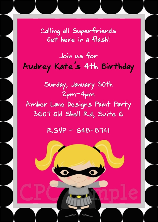 Batgirl Birthday Party Invitations Batgirl Superhero Birthday Invitations Printable or Printed and all other pictures, designs or photos on our website are copyright of their respective owners. we get our pictures from another websites, search engines and other sources to use as an inspiration for you. please contact us if you think we are infringing copyright of your pictures using contact page. we will be very happy to help you.