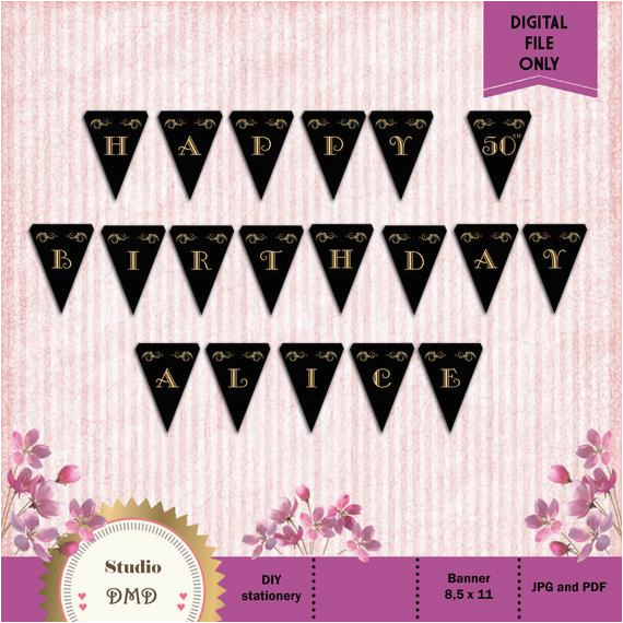 Classy Happy Birthday Banner Personalized Elegant Happy Birthday Banner Black and Gold