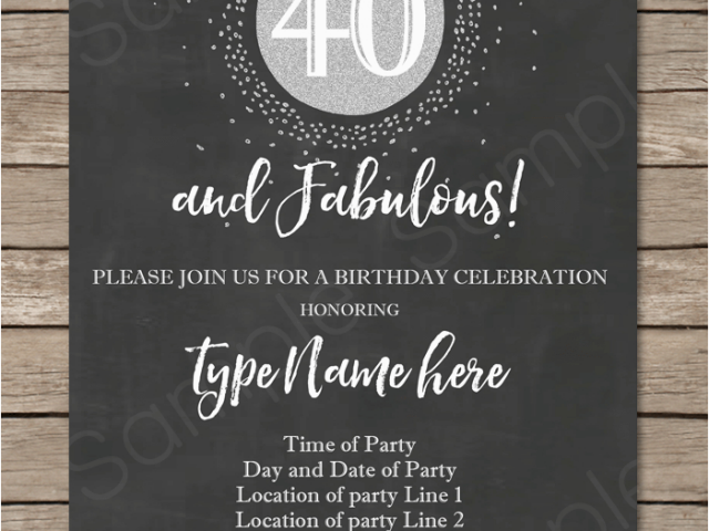 Free Printable 40th Birthday Party Invitation Templates Chalkboard 40th Birthday Invitations Template Printable and all other pictures, designs or photos on our website are copyright of their respective owners. we get our pictures from another websites, search engines and other sources to use as an inspiration for you. please contact us if you think we are infringing copyright of your pictures using contact page. we will be very happy to help you.