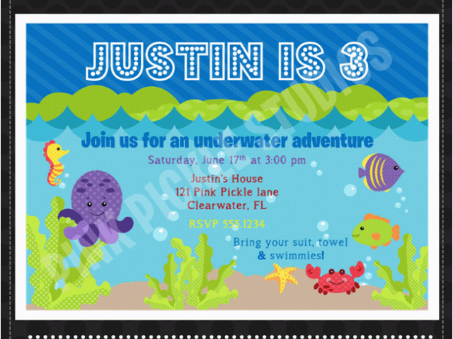 Underwater Birthday Invitations Underwater Adventure Personalized Party Invitation and all other pictures, designs or photos on our website are copyright of their respective owners. we get our pictures from another websites, search engines and other sources to use as an inspiration for you. please contact us if you think we are infringing copyright of your pictures using contact page. we will be very happy to help you.